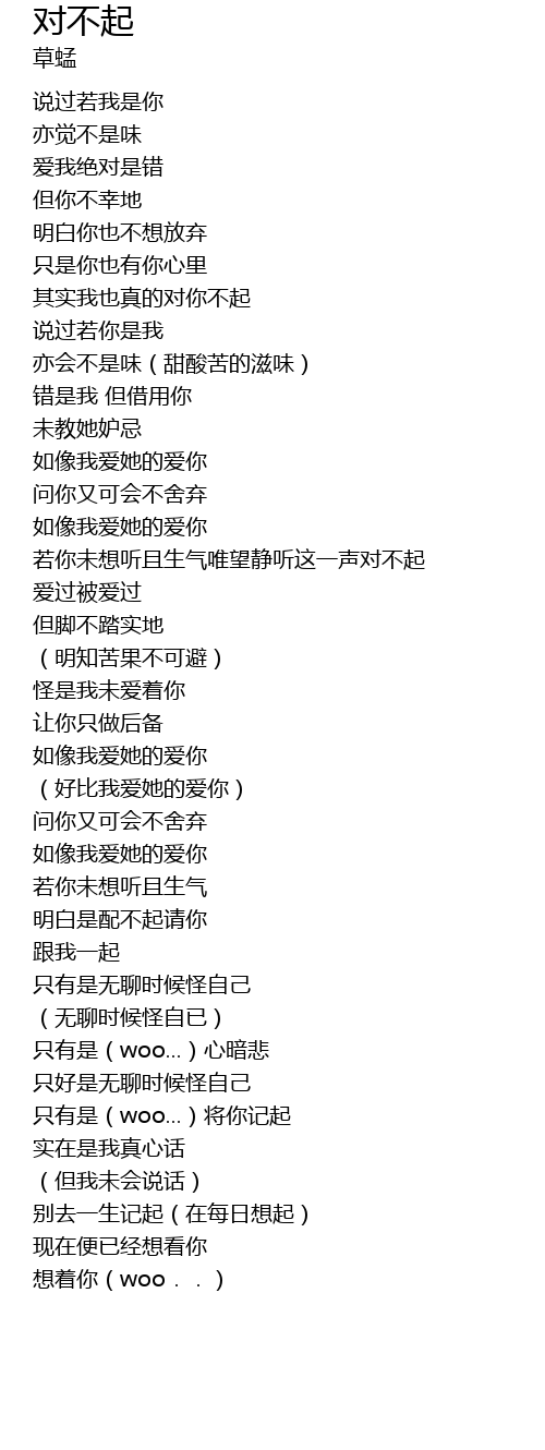 | [01:18.410] | 若你未想听且生气唯望静听这一声对不起 |