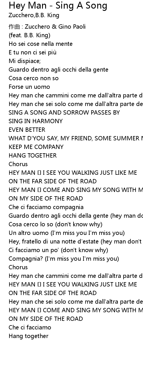 | Hey man che sei solo come me dall' altra parte della strada singing | |