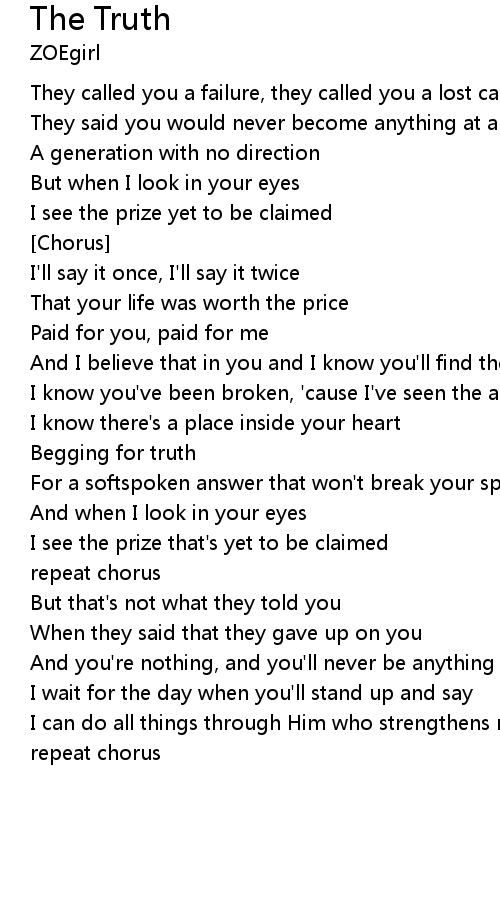 | And I believe that in you and I know you'll find the truth | |