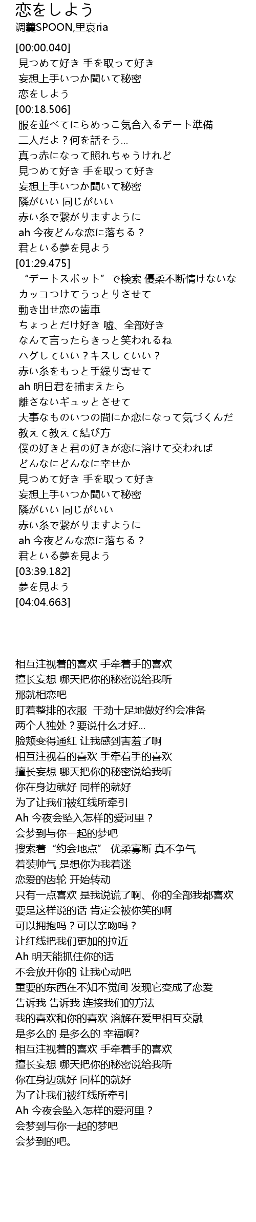 | [02:59.894] | 見つめて好き 手を取って好き |