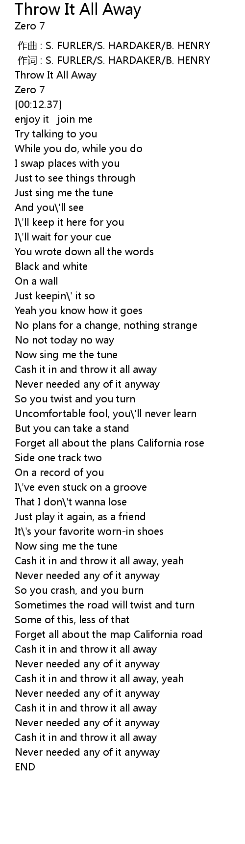 | [00:00.00] | zuo qu : S. FURLER S. HARDAKER B. HENRY |