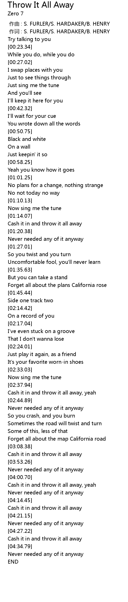 | [00:00.00] | 作曲 : S. FURLER/S. HARDAKER/B. HENRY |