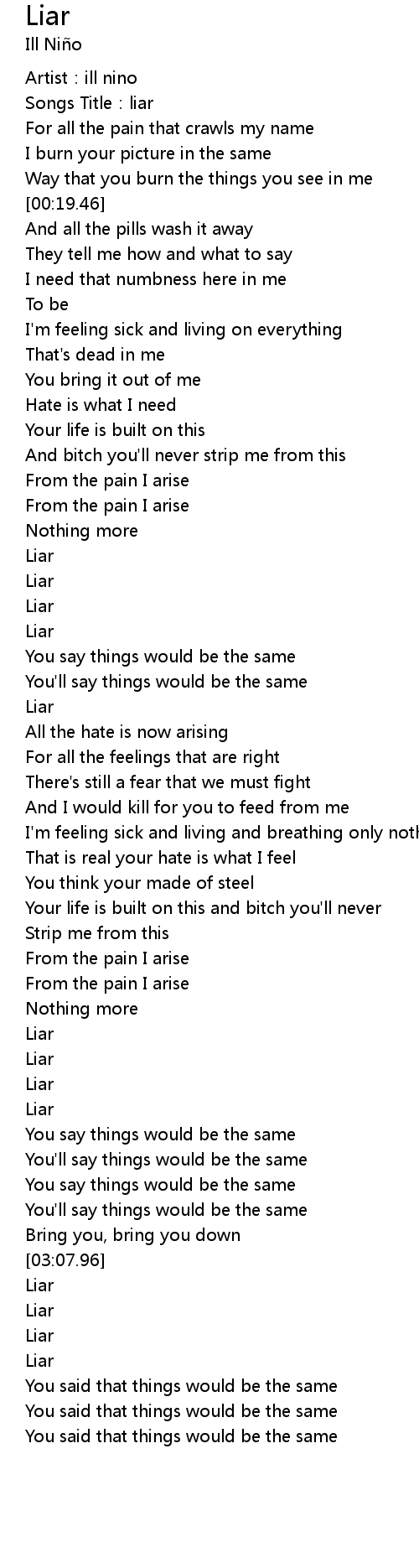 | [02:07.93] | I'm feeling sick and living and breathing only nothing |