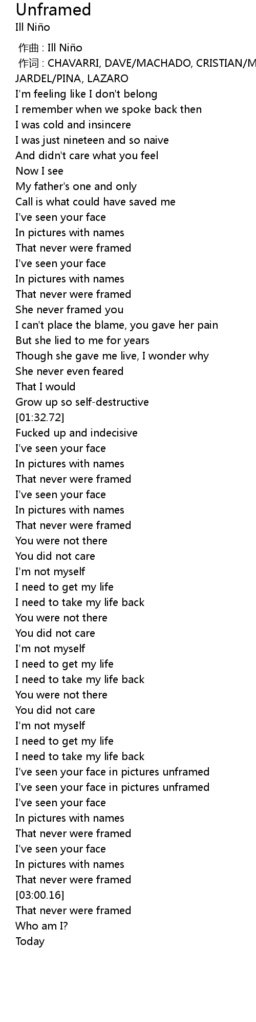 | [00:00.00] | 作曲 : Ill Niño |