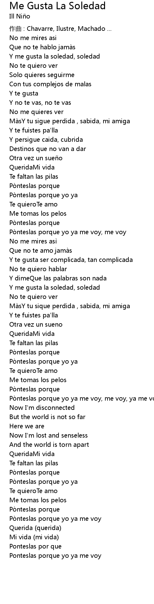 | Mà sY tu sigue perdida , sabida, mi amiga | |