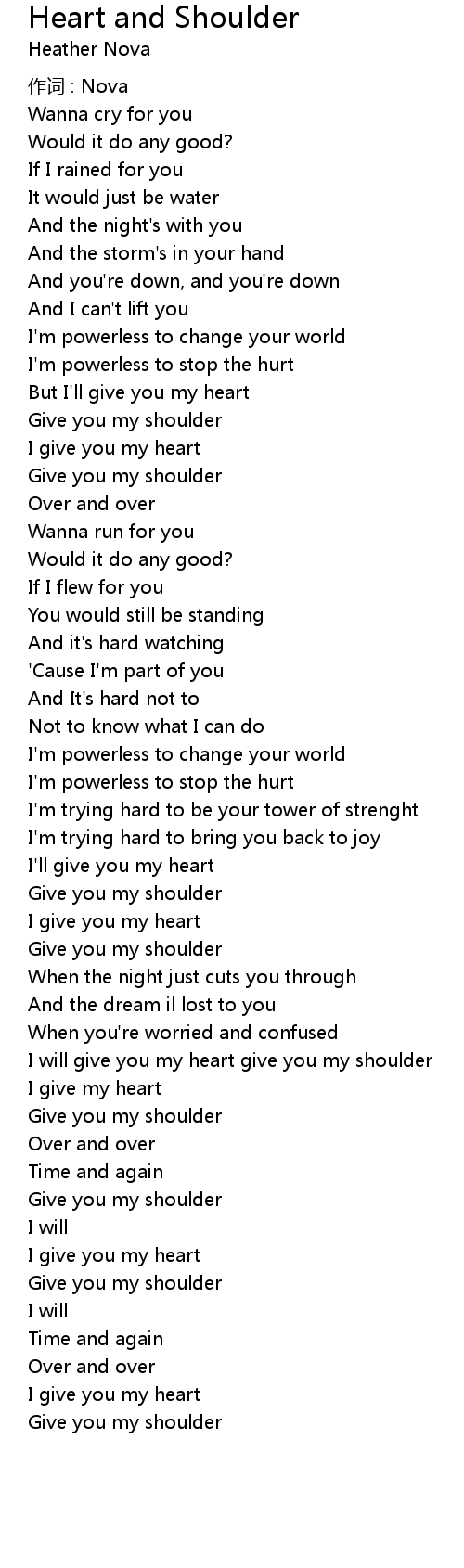 | I will give you my heart give you my shoulder | |