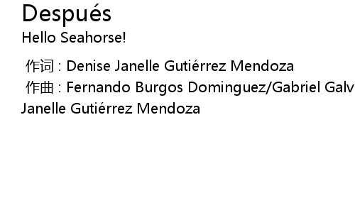 | [00:00.000] | 作曲 : Fernando Burgos Dominguez/Gabriel Galvan León/Denise Janelle Gutiérrez Mendoza |