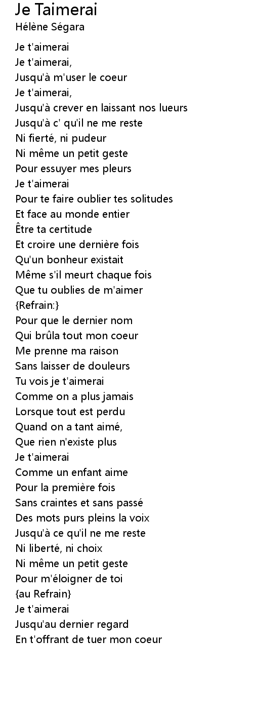 | Song | Je Taimerai |