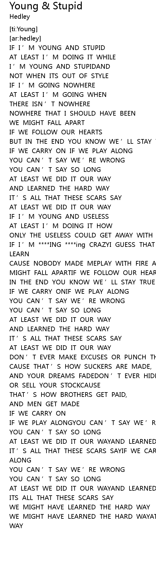 | [00:04.114] | IF I ' M YOUNG AND STUPID |