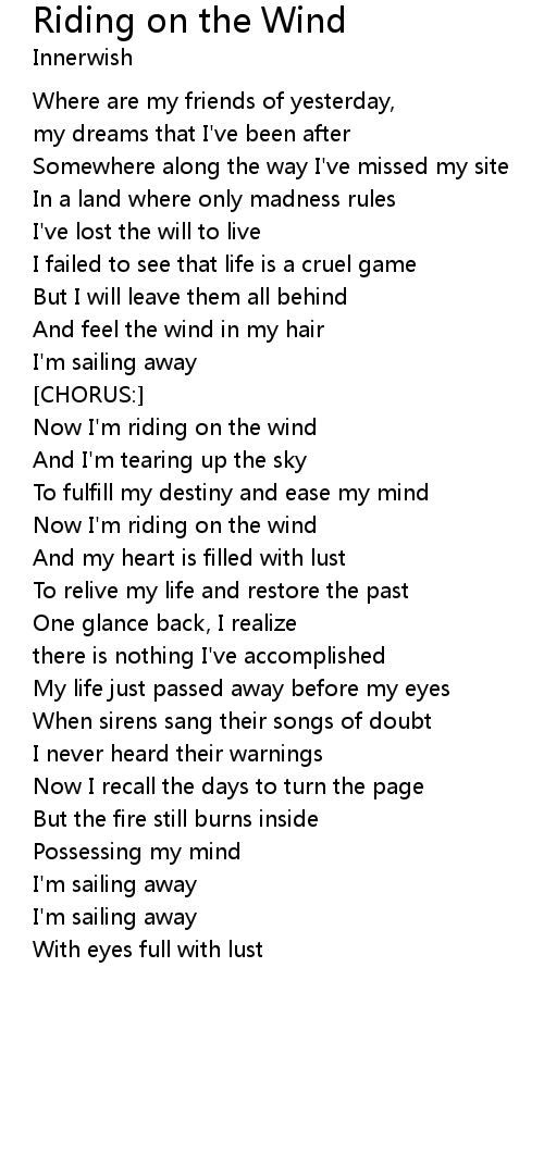Now I'm riding on the wind |