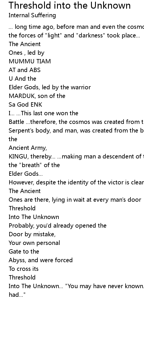 Into The Unknown... "You may have never known. Or, you may wish you never had..." |