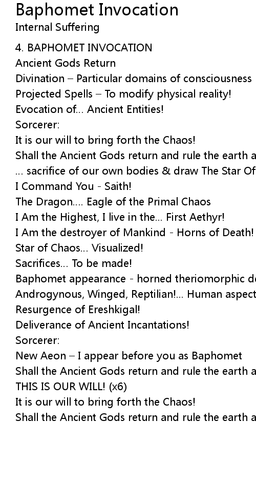 | Song | Baphomet Invocation |