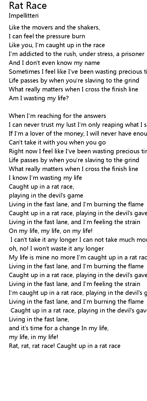 | My life is mine no more I' m caught up in a rat race, playing in the devil' s game | |