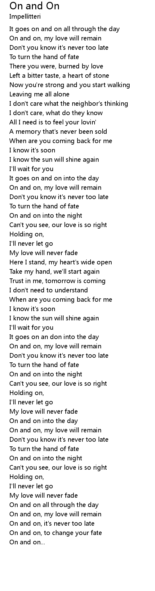 On and on, my love will remain |