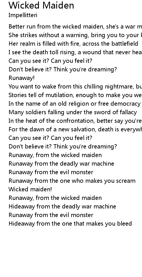 Better run from the wicked maiden, she's a war machine |