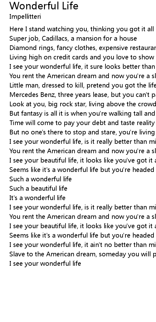 I see your wonderful life, it ain't no better than mine |