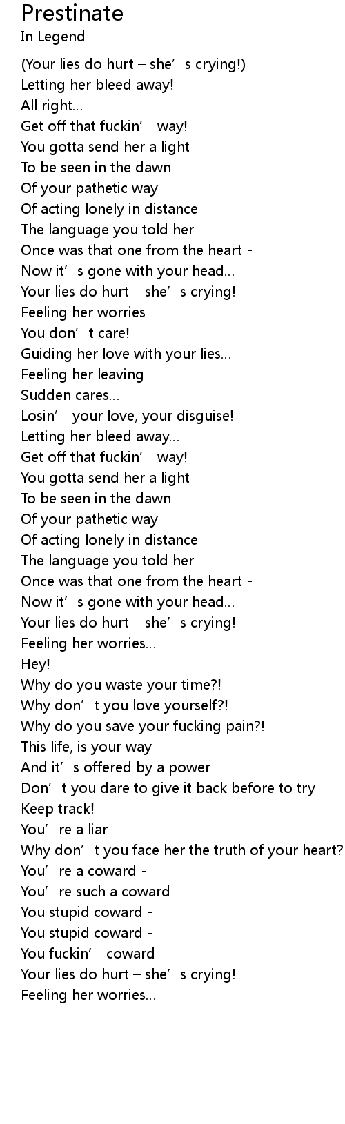 | Your lies do hurt she' s crying! | |
