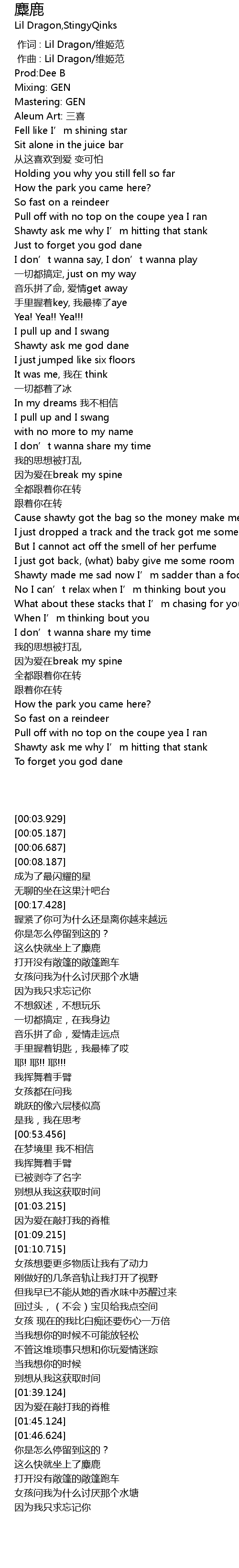 | [00:01.000] | 作曲 : Lil Dragon/维姬范 |