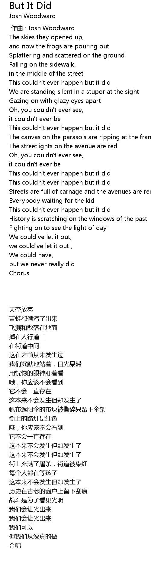 | [00:22.52] | This couldn' t ever happen but it did |