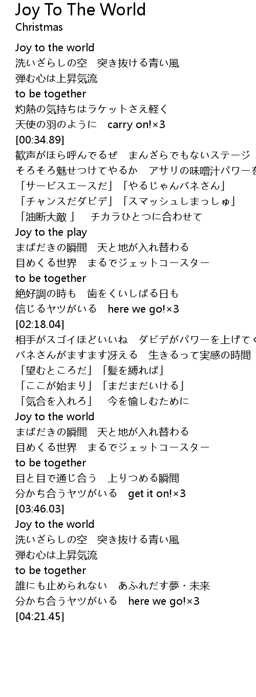 | [01:23.14] | 「サービスエースだ」「やるじゃんバネさん」 |