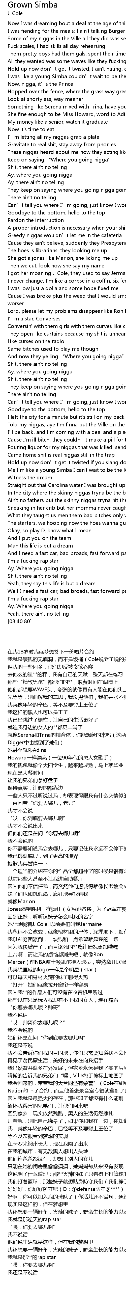 | [00:40.08] | I was like a young Simba couldn’t wait to be the King |