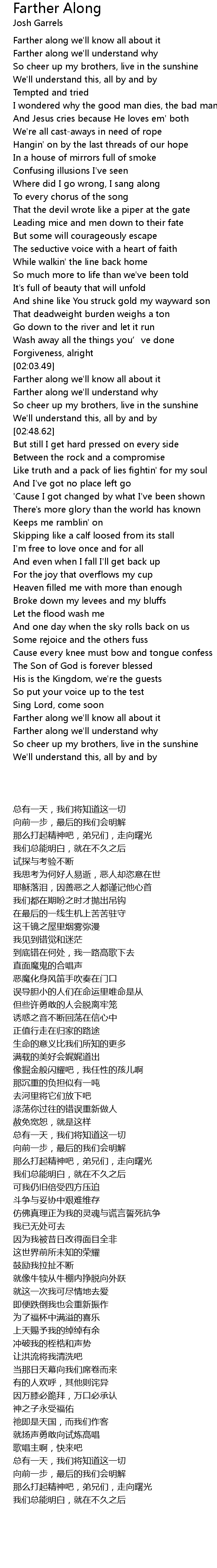 | Song | Farther Along |