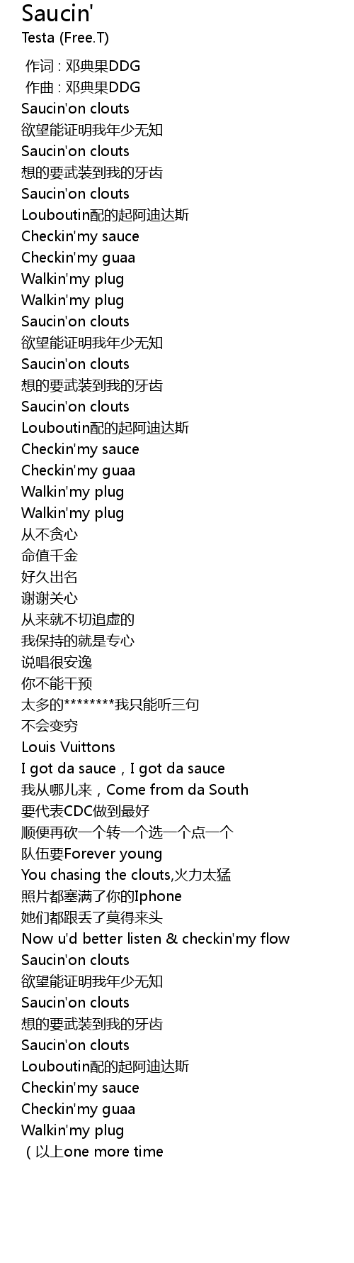 | [00:50.18] | Saucin' on clouts |