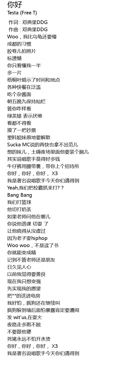 | [01:04.44] | nǐ hǎo, nǐ hǎo, nǐ hǎo, X3 |