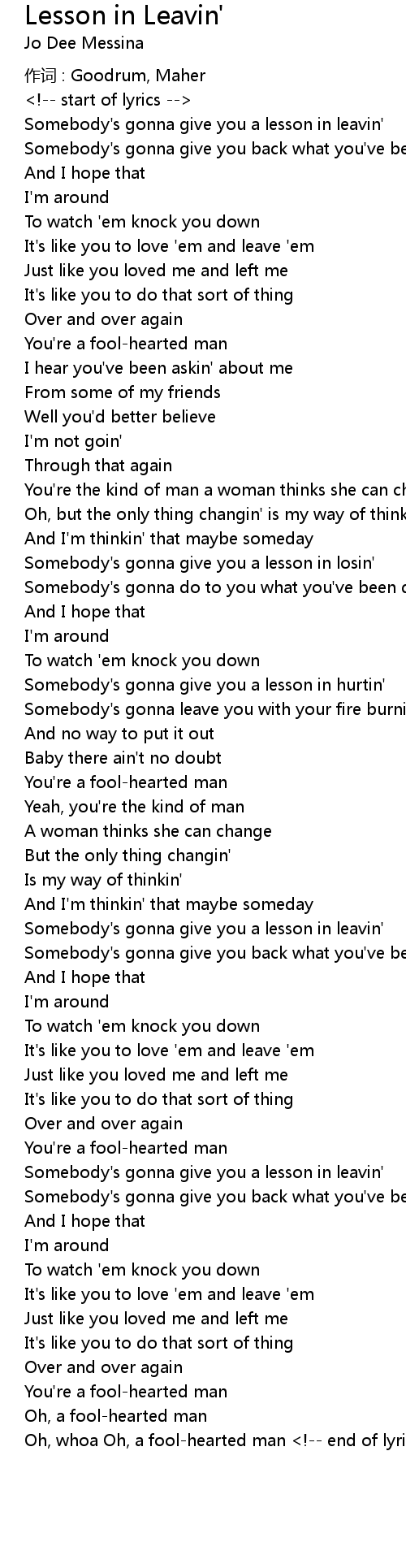| Somebody' s gonna give you a lesson in leavin' | |