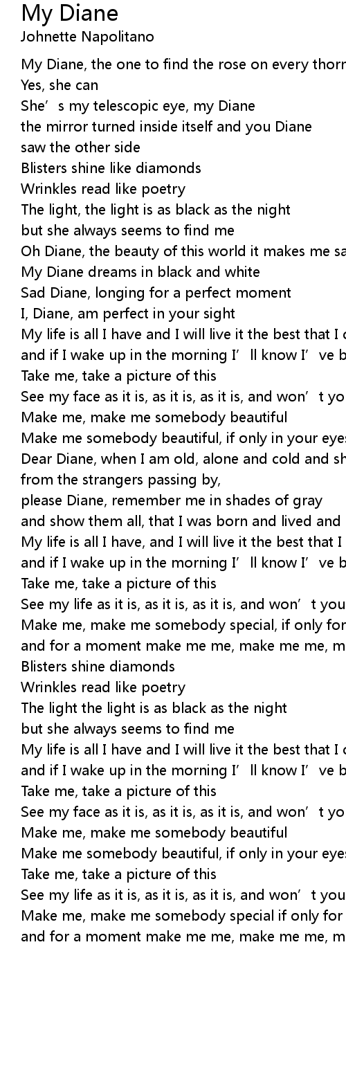 | Dear Diane, when I am old, alone and cold and shy away | |