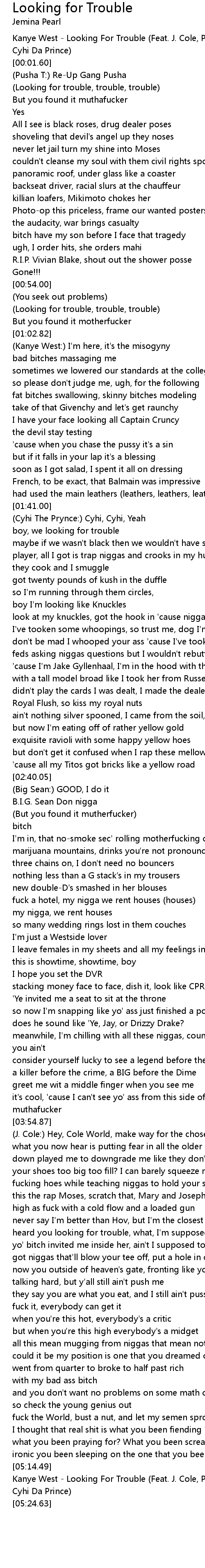 Kanye West - Looking For Trouble (Feat. J. Cole, Pusha T, Big Sean & Cyhi Da Prince) |