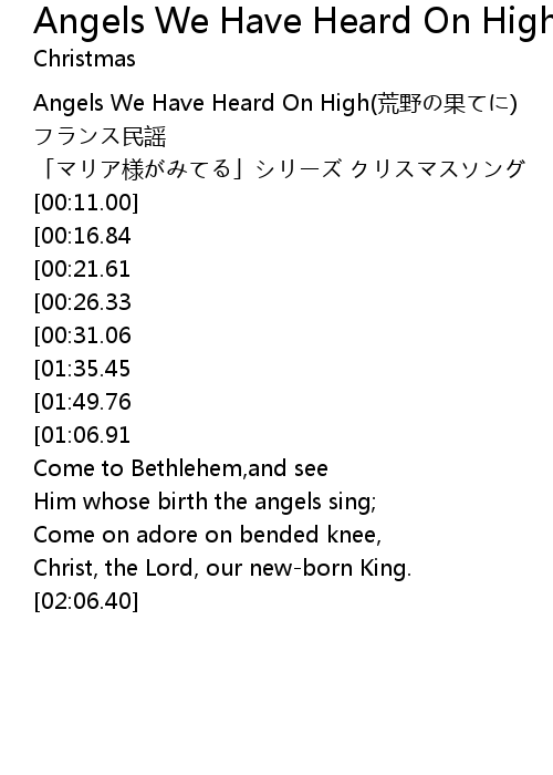 | [00:01.00] | Angels We Have Heard On High(荒野の果てに) |