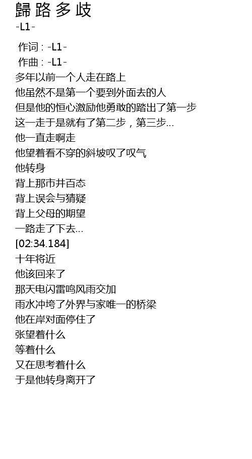 | [00:01.000] | zuò qǔ : L1 |