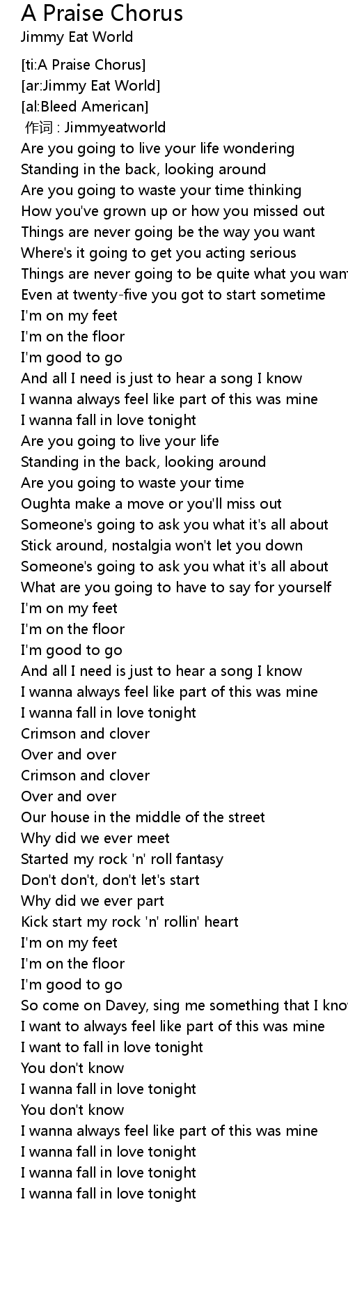 | [00:00.00] | 作词 : Jimmyeatworld |