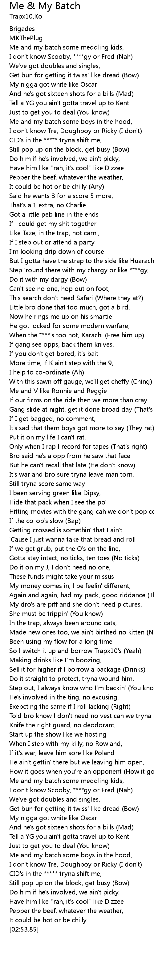 | [02:40.55] | Me and my batch some boys in the hood, |