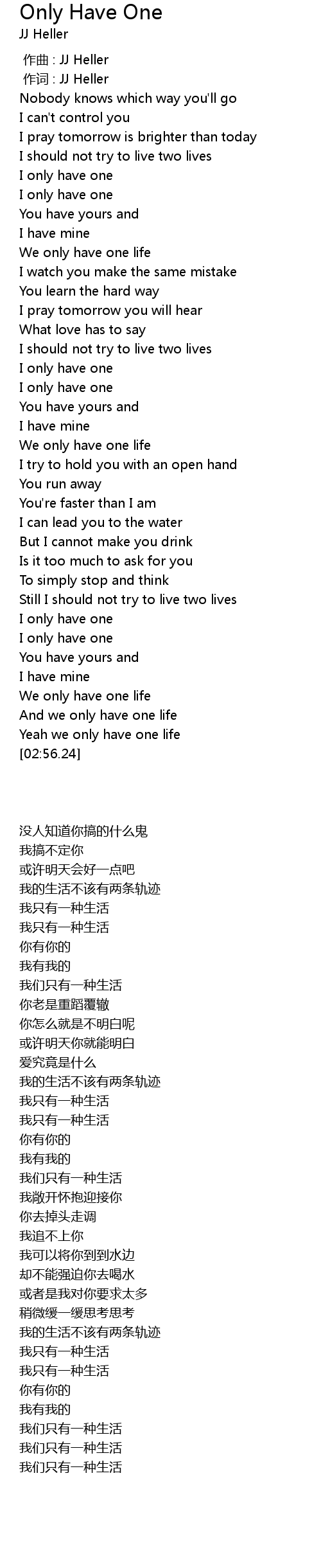 | [00:55.07] | We only have one life |