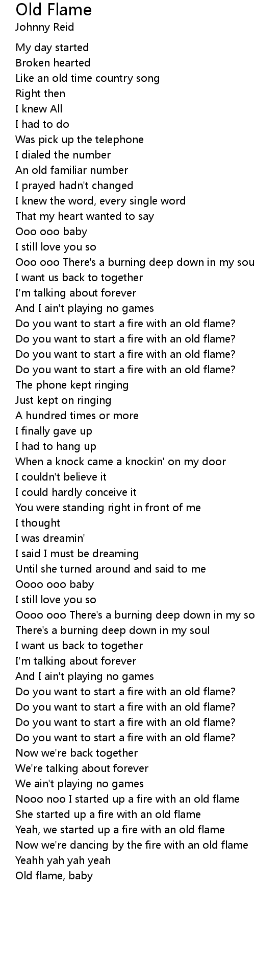 Nooo noo I started up a fire with an old flame |
