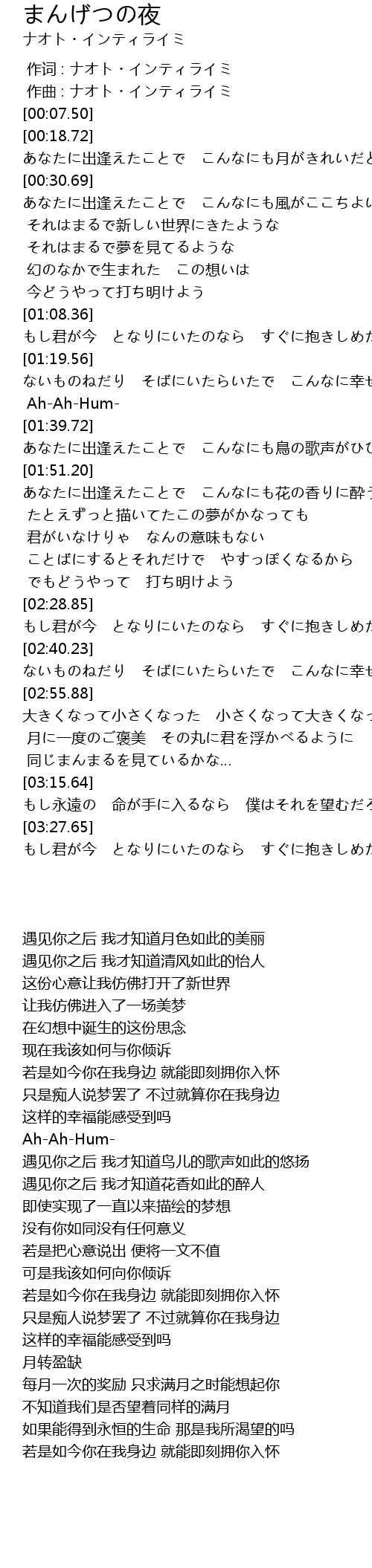 | [00:18.72] | あなたに出逢えたことで こんなにも月がきれいだと知り |
