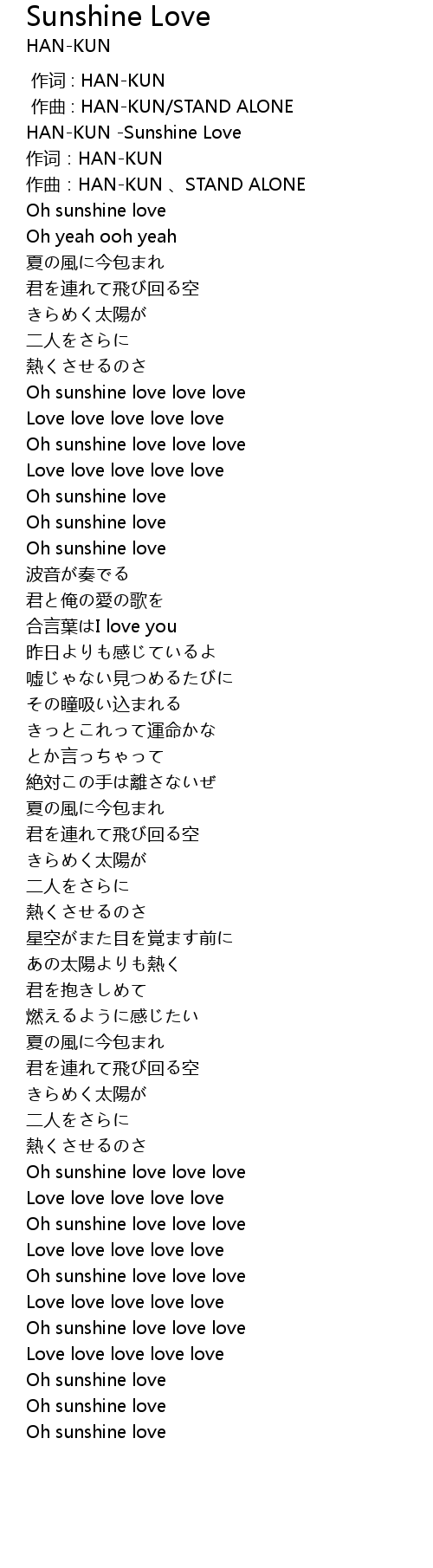 | [00:00.321] | HAN-KUN -Sunshine Love |