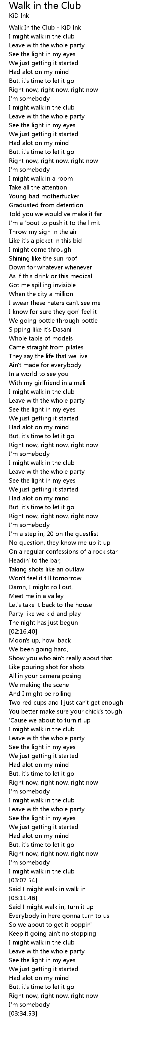 | [00:00.00] | Walk In the Club - KiD Ink |