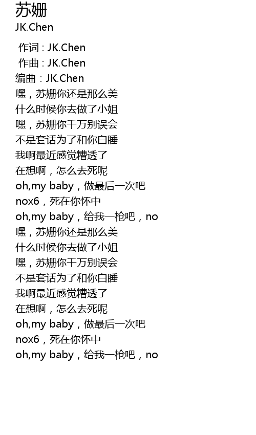 | [00:01.000] | zuò qǔ : JK. Chen |