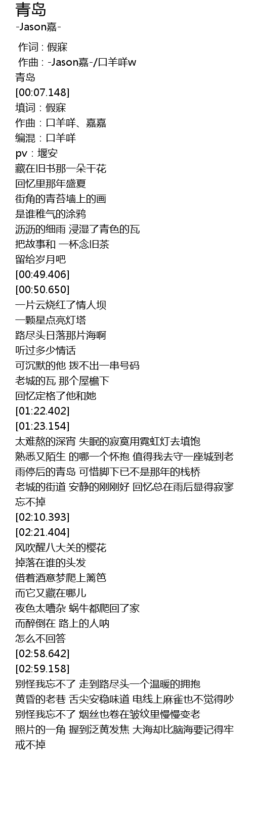 | [00:01.000] | zuo qu : Jason jia kou yang mie w |