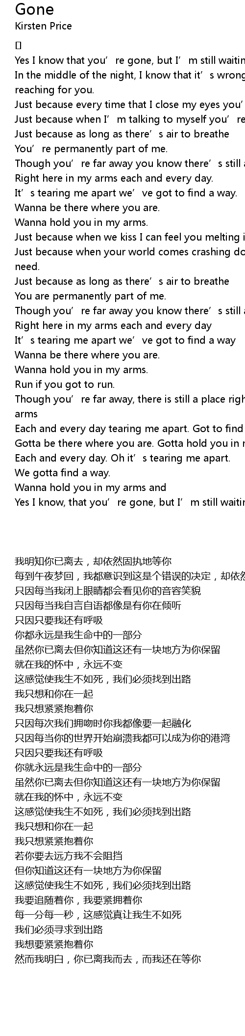 | [02:52.837] | Yes I know, that you' re gone, but I' m still waiting for you. |
