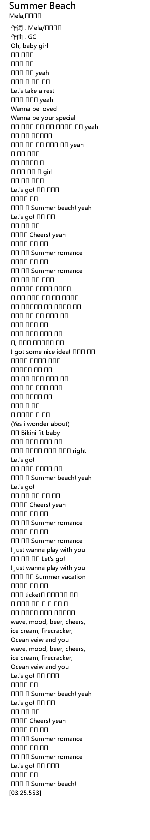| [03:24.088] | 뜨거운 저 Summer beach! |