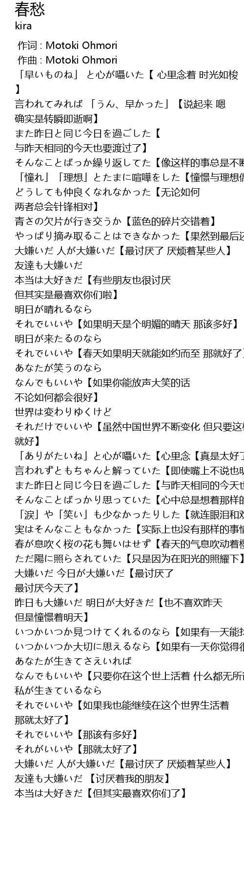 | [00:51.365] | 明日が来たるのなら それでいいや【春天如果明天就能如约而至 那就好了】 |