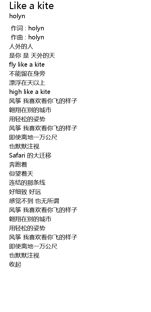 | [01:16.704] | 风筝 我喜欢看你飞的样子 |