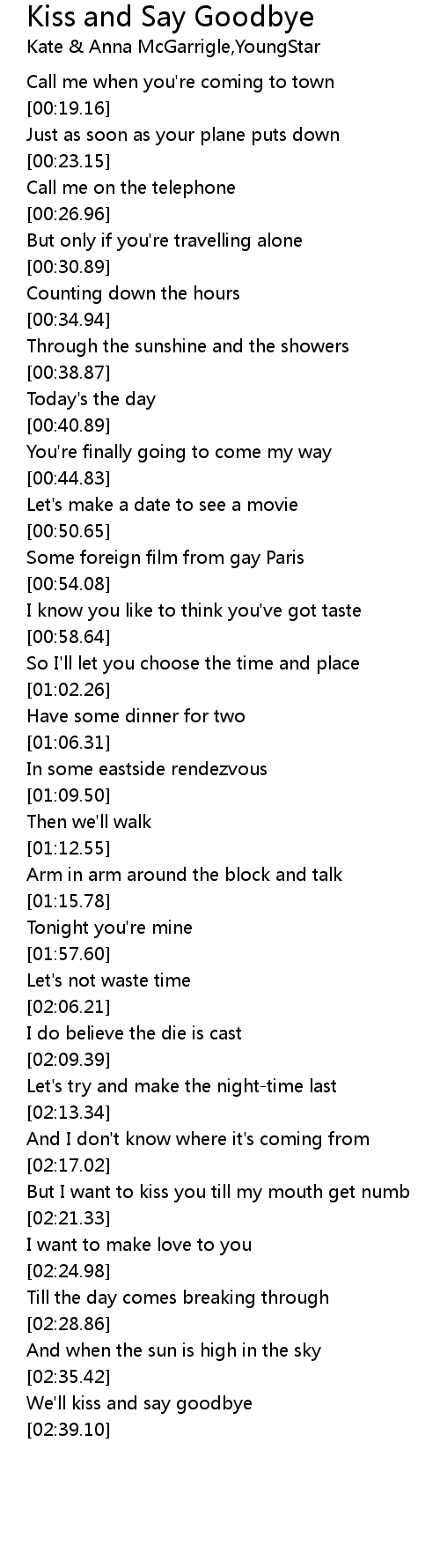 We'll kiss and say goodbye |