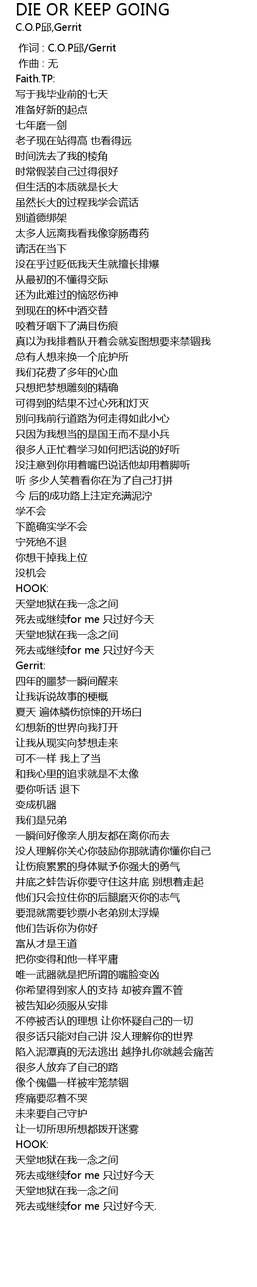 | [00:00.000] | 作词 : C.O.P邱/Gerrit |