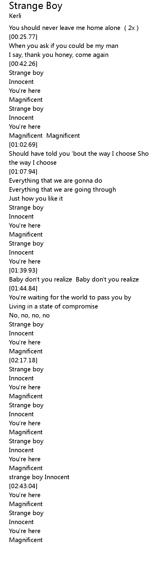 | [00:54.99] | Strange boy |