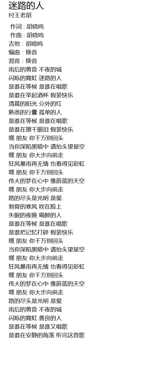 | [00:12.132] | 吉他:胡晓鸣 |